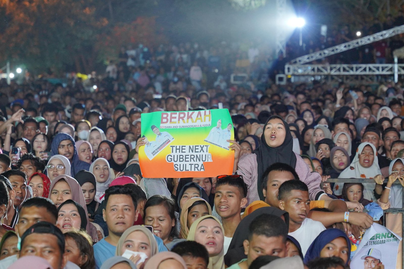 BAU BAU - Pasangan calon Gubernur dan Wakil Gubernur Sulawesi Tenggara, Andi Sumangerukka (ASR) dan Ir. Hugua, kembali menggelar Konser Berkah ketiga di Lapangan Alun-Alun Kotamara, Kota Bau Bau, pada Sabtu (21/9/2024). Acara yang dihadiri puluhan ribu warga ini menampilkan sejumlah artis papan atas nasional dan penyanyi lokal.