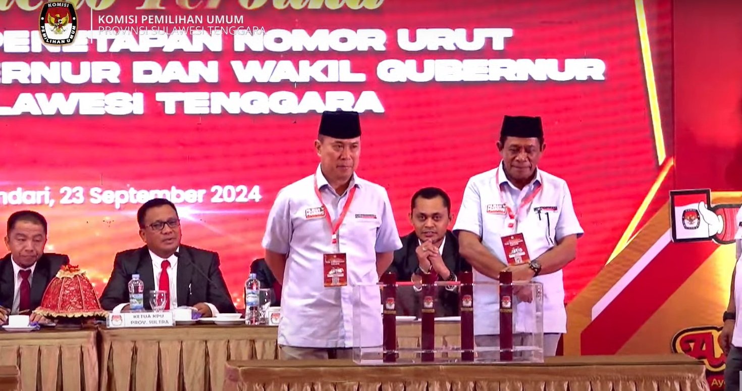 KENDARI, 24 September 2024 - Pasangan calon Gubernur dan Wakil Gubernur Sulawesi Tenggara, Andi Suma...