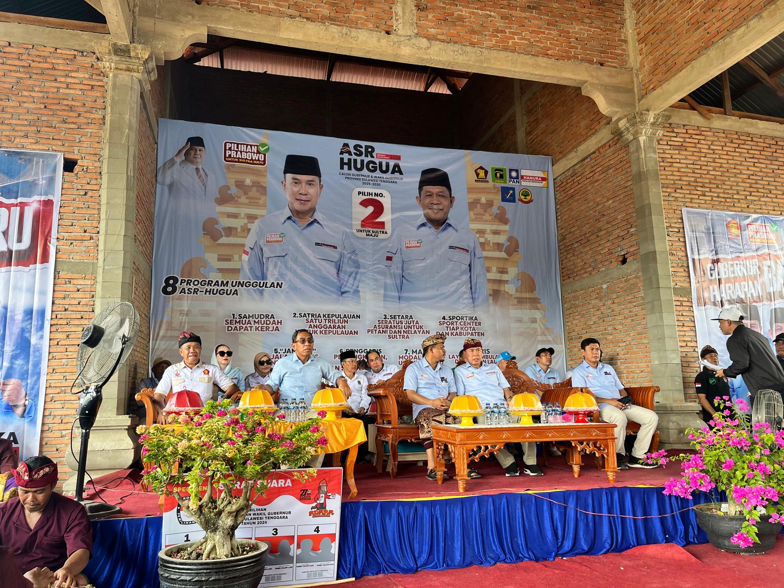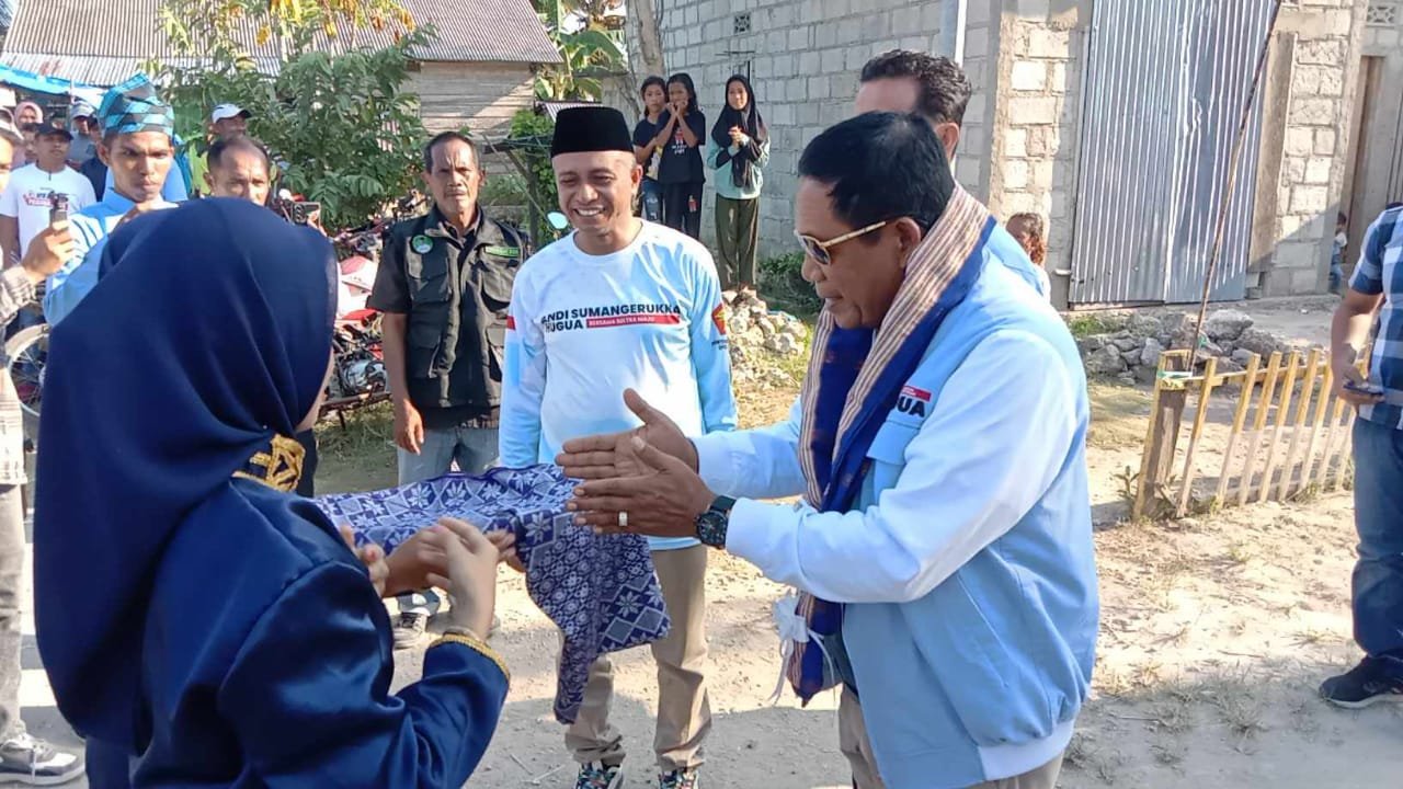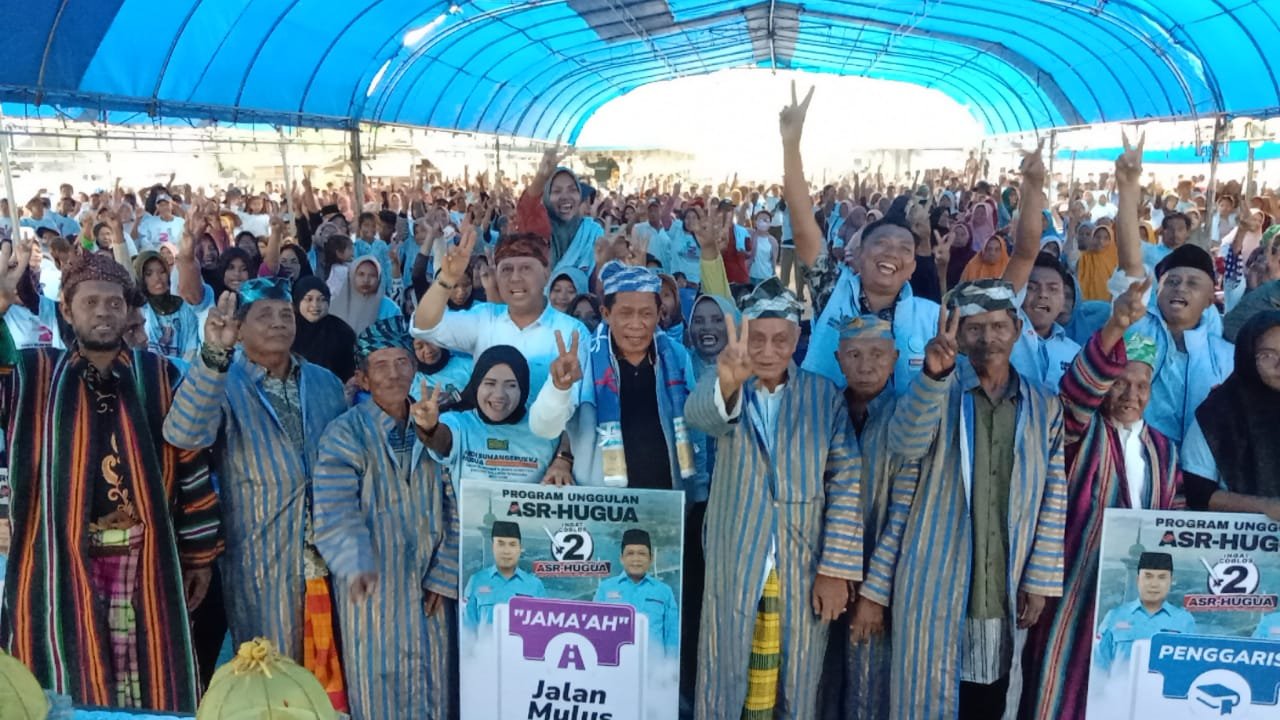 BUTON - Pasangan calon Gubernur dan Wakil Gubernur Sultra, Andi Sumangerukka-Hugua (ASR-Hugua) mengg...